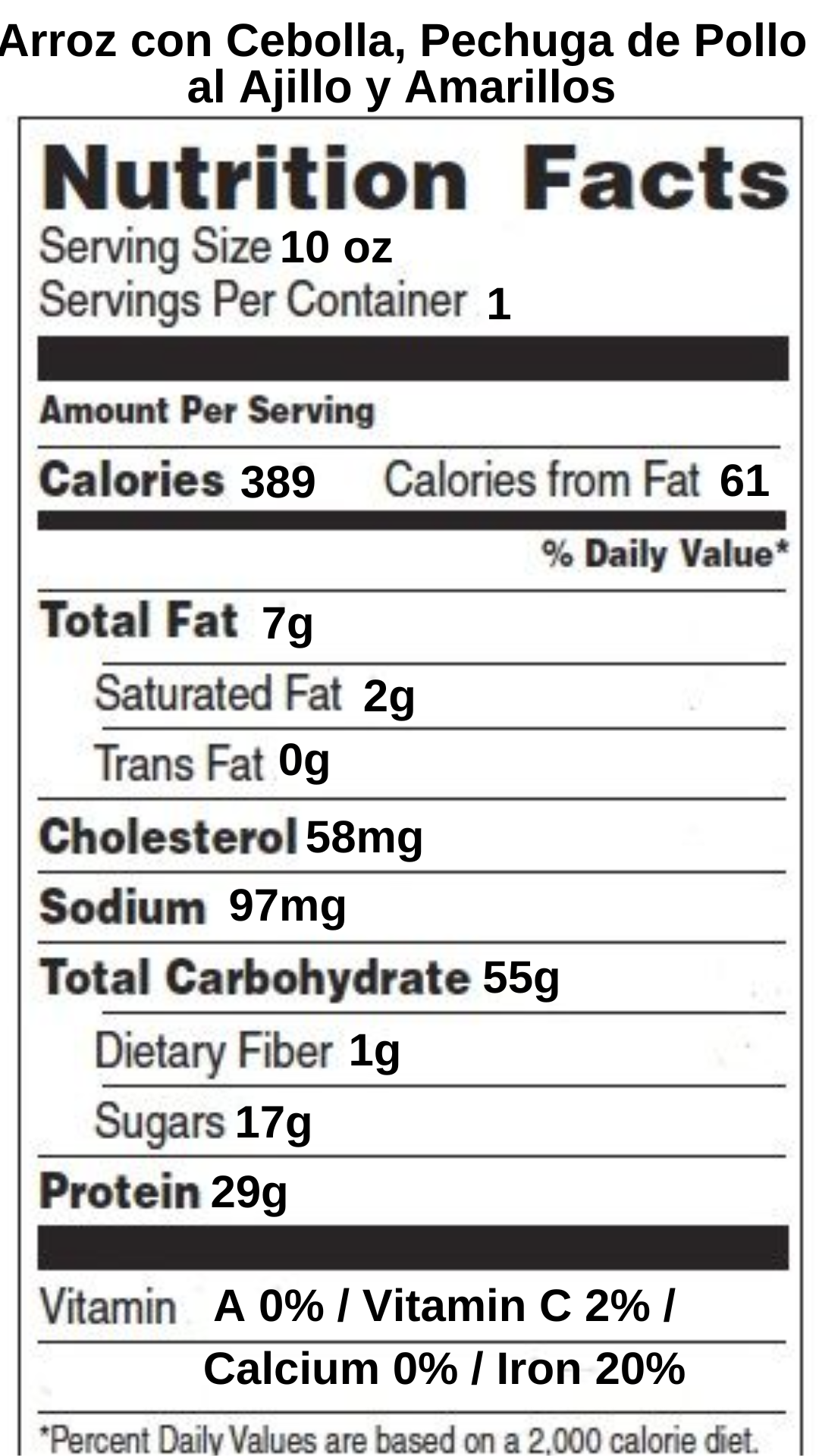 Arroz con Cebolla, Pollo al Ajillo y Amarillos